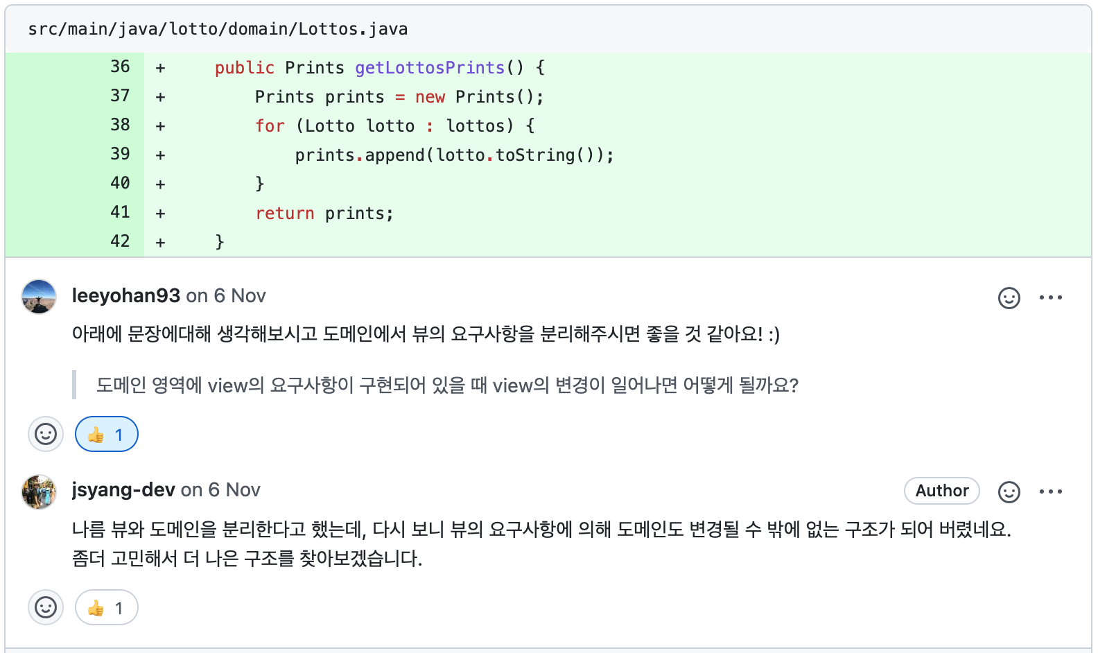 Domain 영역에 View 로직이 섞이는 참사가 발생하였다. Dto를 생각하고 Prints라는 클래스를 만들었는데, Prints에 값을 넣는 로직이 Domain 클래스에 위치하다 보니 명확한 분리가 이루어지지 못했다.